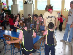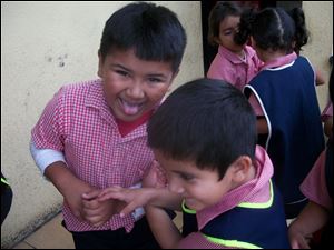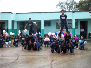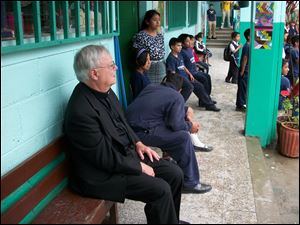 Students at Francisco Coll grade school put on a show to welcome the Rev. Donald Vettese, the Jesuit priest who founded the Guatemala City school when he was president of St. John's High School in Toledo.