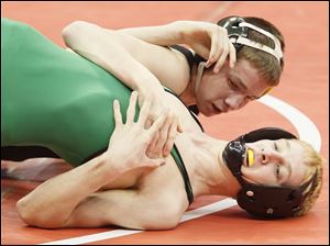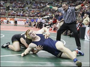Mimmo Lytle of Swanton defeats Patrick Garren of Columbus Bishop Ready in a 285 pound semifinal match during the Division III State Wrestling Tournament.