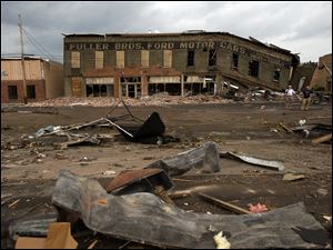 The remains of Hill's Carpet Center in Concord Ala., are seen after a tornado ripped through parts of the town late Wednesday