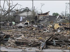A car lies overturned and buildings destroyed in Tuscaloosa, Ala., after a wave of severe storms laced with tornadoes strafed the South on Wednesday.