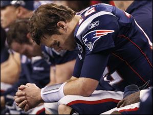 New England Patriots quarterback Tom Brady sits on the bench during the second half of the NFL Super Bowl XLVI football game against the New York Giants, Sunday, Feb. 5, 2012, in Indianapolis.