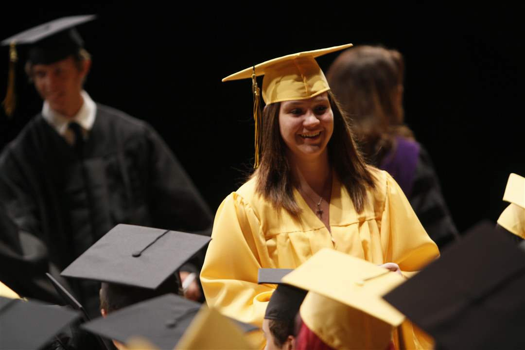 Courtney Motter walks back to her seat after receiving her diploma during the Northview High School graduation ceremony at the Stranahan Theater.