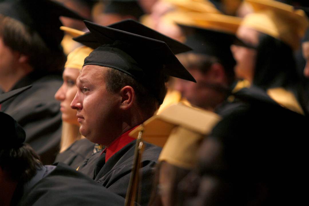 Jacob Mikolajczyk of Northview High School gets emotional during the school's graduation ceremony at the Stranahan Theater on Sunday, June 10, 2012.