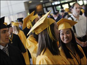 Ashley Hall of Northview High School, waits for her row to be called to receive their diplomas during the school's graduation ceremony at the Stranahan Theater on Sunda.