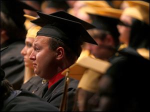 Brandyn Hall of Northview High School, smiles as his classmates receive their diplomas during the school's graduation ceremony at the Stranahan Theater on Sunday, June 10, 2012. THE BLADE/ZACK CONKLE