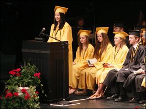 Jennifer Deng of Northview High School, speaks as valedictorian during the school's graduation ceremony at the Stranahan Theater on Sunday, June 10, 2012.