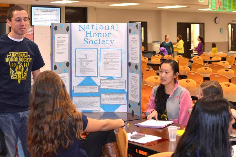 Stephanie Mahoney and her son, a current 8th grader at Timberstone, check out some of the clubs and organizations available to him when he starts school next year at Southview.