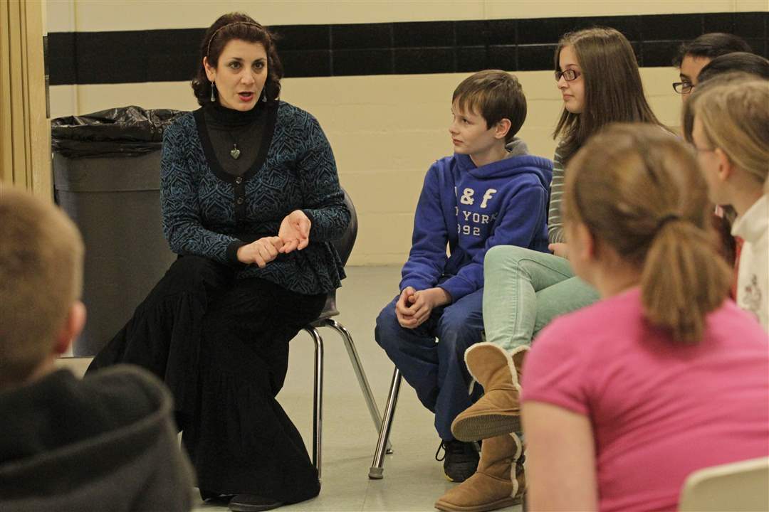 Ella Wilson, 10, left, and Adam Parker, 12, work though an improvisational skit as their teacher Irina Zaurov gives them direction.