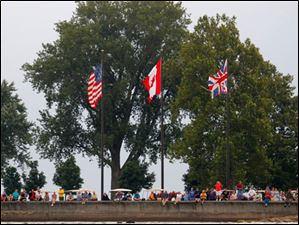 Spectators watch as tall ships depart Put-in-Bay for the reenactment of the Battle of Lake Erie Bicentennial.