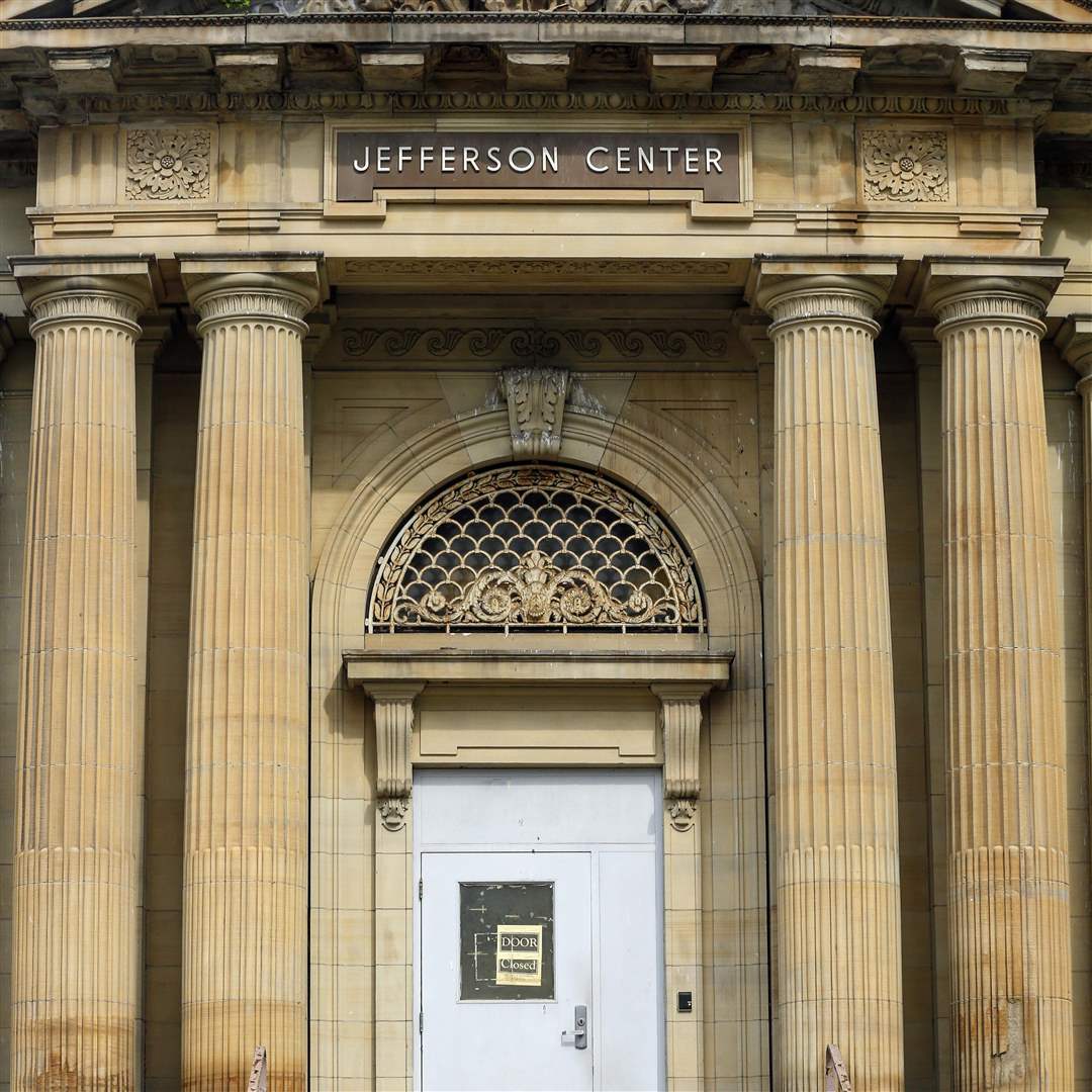 Broken windows at the Madison Building (Nasby Building) at the intersection of Huron Street and Madison Street.