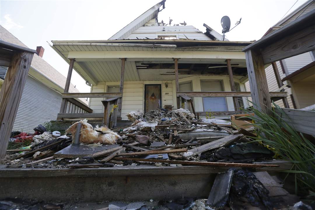 Terese Hurst stands on her porch at 311 Parker and discusses the burned out house next door at 307 Parker on the east side of Toledo.