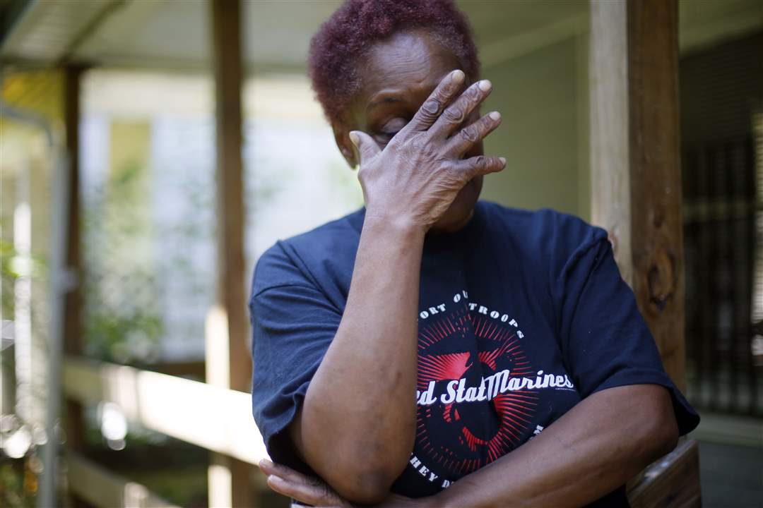 Delores Kelly, 65, looks from her porch in her backyard at 1243 Avondale toward the decrepit house next door. The property is to be torn down soon according to Columbia gas who turned off the utilities.