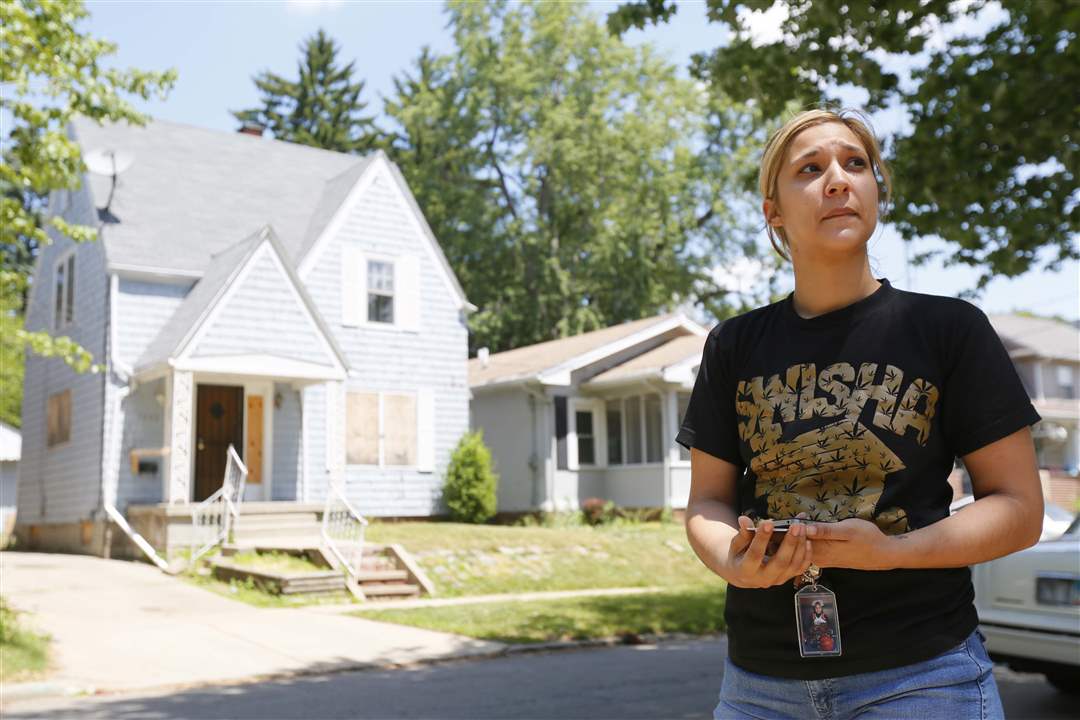 Tiffany Bolczak talks about the abandoned home at 1942 Talbot, which is next to her house at 1944 Talbot in west Toledo.