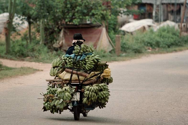 August 3, 2003-- Bananas are delivered by motorbike in the Song Ve Valley.