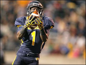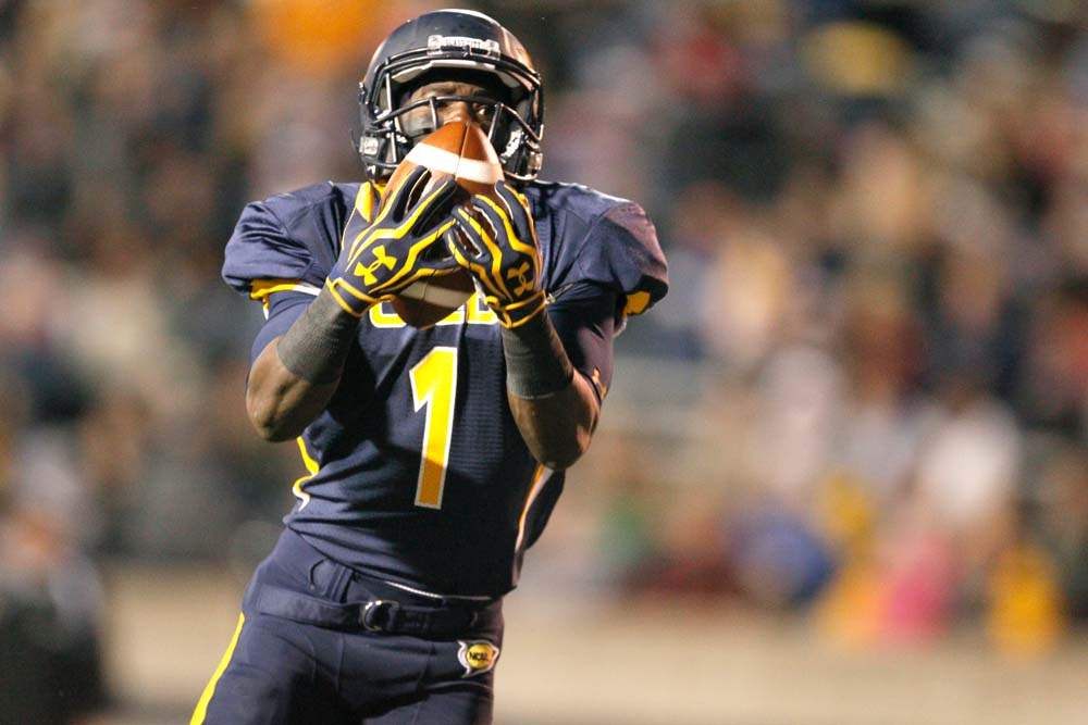 Bernard Reedy, 1, hauls in a pass for a touchdown during the second quarter.