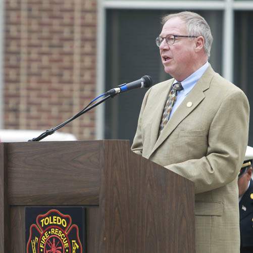 Mayor of the city of Toledo D. Michael Collins speaks during the Toledo Fire Department's annual memorial service.