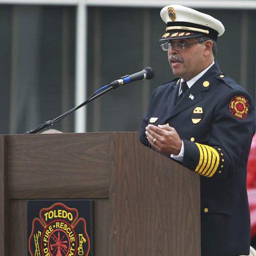 Toledo Fire and Rescue Department chief Luis Santiago speaks during the Toledo Fire Department's annual memorial service.