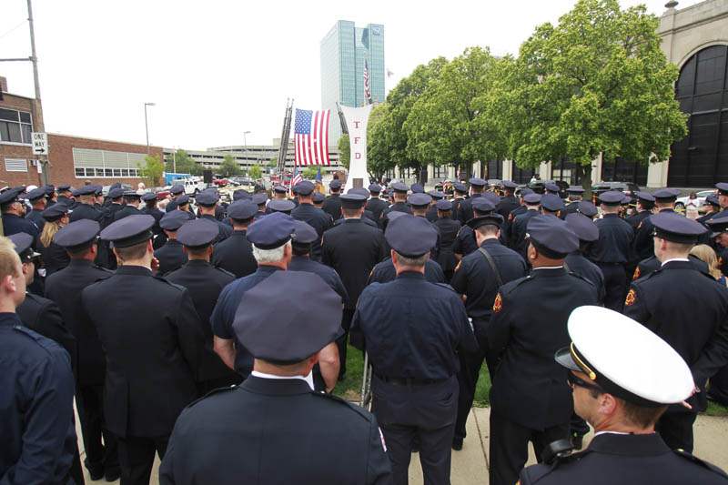 A multitude of police officers and firefighters attended the Toledo Fire Department's annual memorial service.