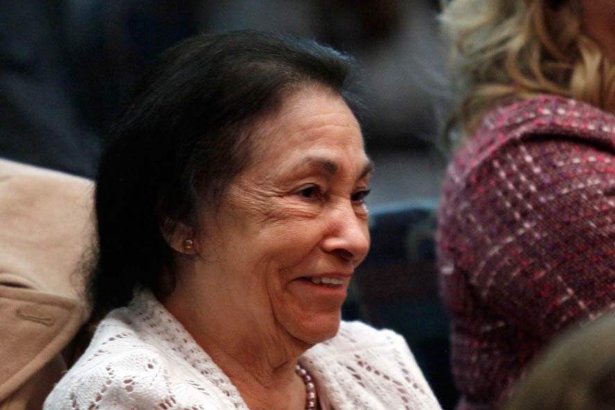 Mary Rodriguez beams as her son David Rodriguez is promoted from the rank of captain to battalion chief.