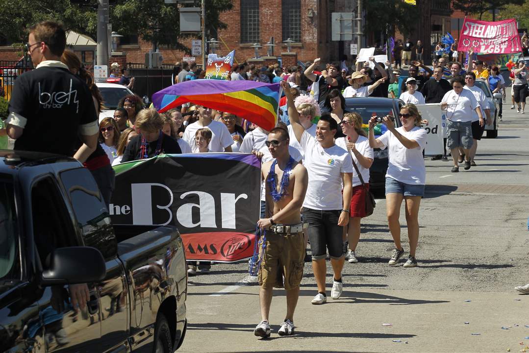 Marchers call for unity during the Toledo Gay Pride parade in downtown.