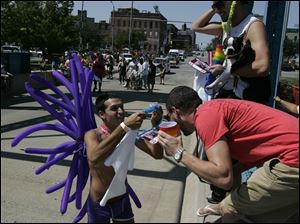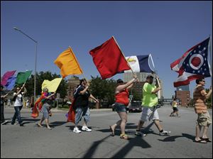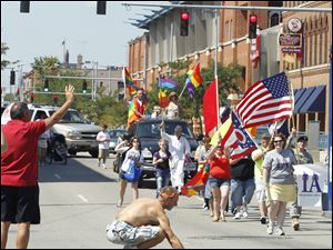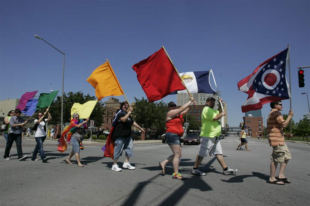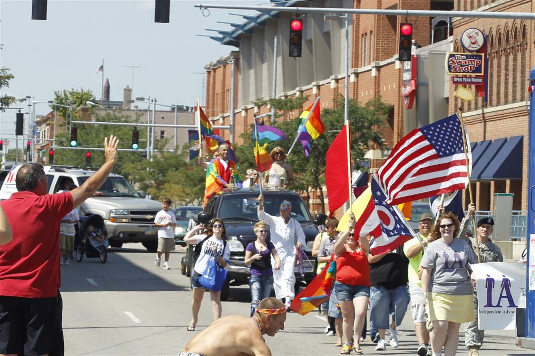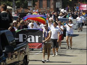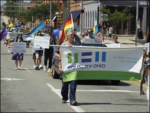 Marchers take part in the Toledo Gay Pride parade downtown.