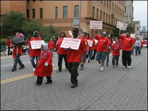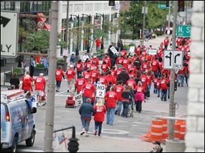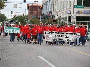Sheet Metal Workers Local 33 march down Adams Street past North Superior.