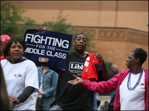 Allen Chatman of North Toledo carries a sign supporting American workers on Labor Day.