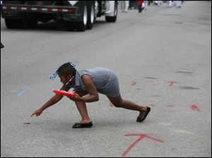 Constance Davis-Bruster, 8, of West Toledo, stretches to grab a piece of candy during the parade.