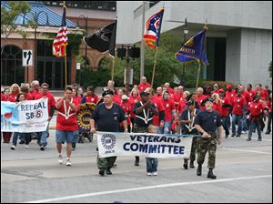 Members of United Auto Workers Local 12 march together in the Labor Day parade.