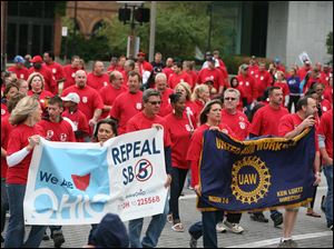 Auto workers representing UAW Region 2-B shows support for the We Are Ohio campaign and the repeal of Ohio's anti-collective bargaining law.