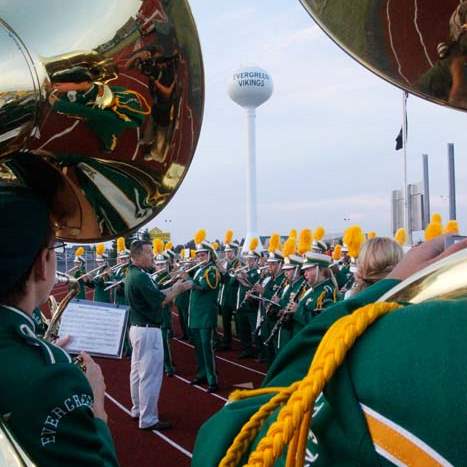 Evergreen band director Chris Lyons gives instructions to his musicians.