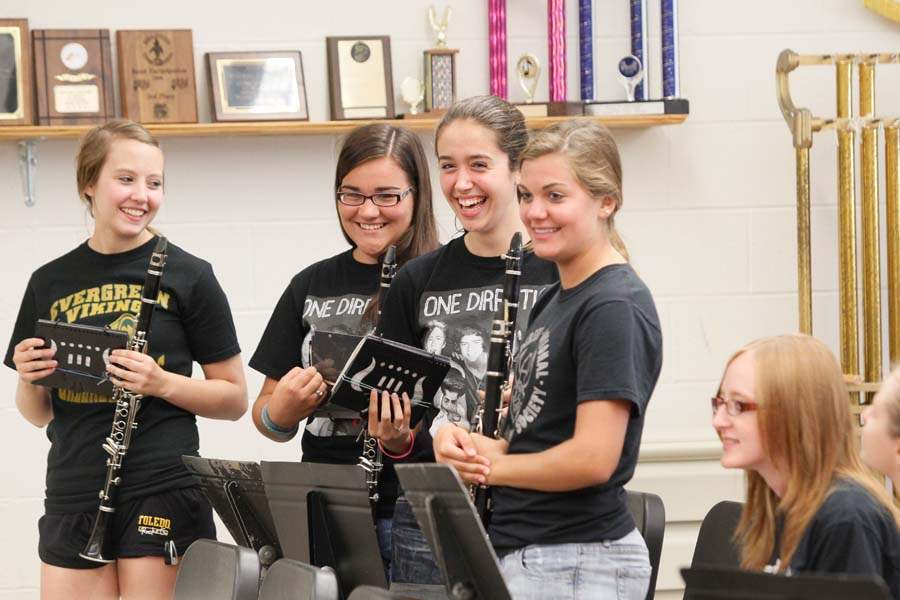 Evergreen marching band clarinet players are, from left, Emma Carpenter, Brittney Wilson, Liz Smithmyer, Rylee Svoboda, and Taylor Konwinski.