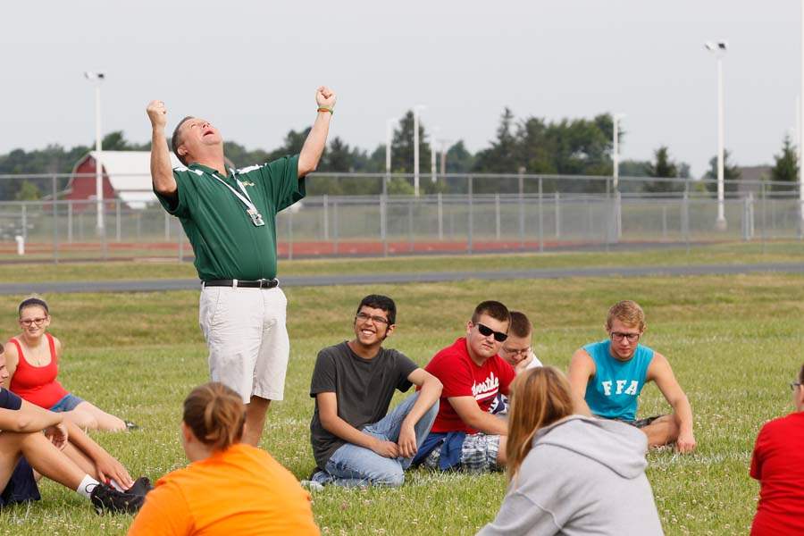 Band director Chris Lyons uses humor to reach his high school students on the first day of camp.