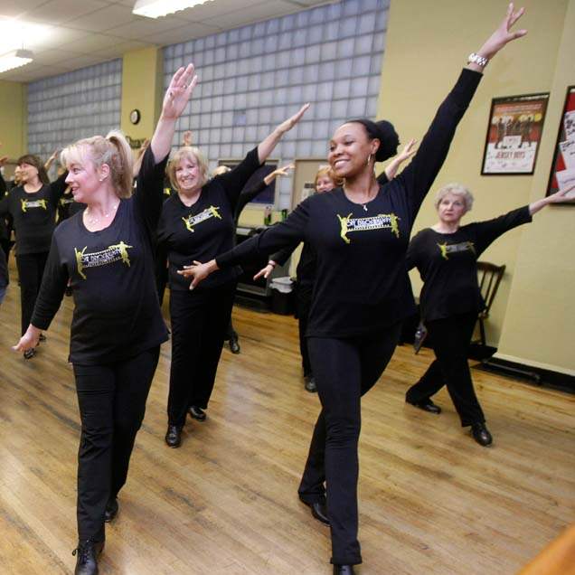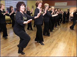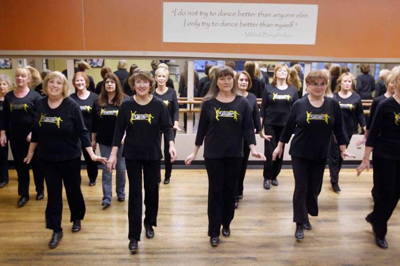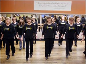 Pat Balderas, front left, and and Geri Messer, second from left, co-owners, perform a time step .