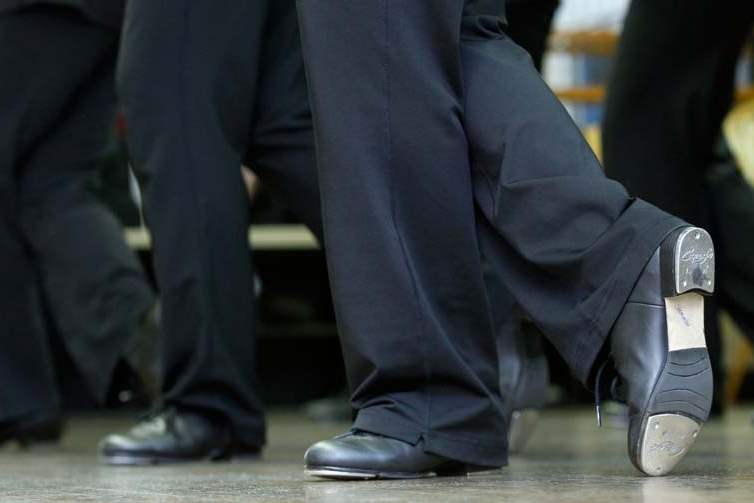A dancer performs a toe tap.
