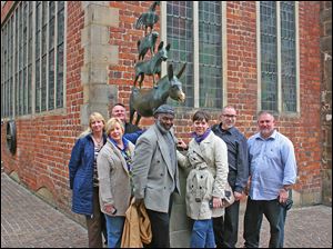 Mayor Mike Bell and Christa Luttman, a Toledoan with ties to Germany, look up at Bremen's St. Peter Cathedral in the market place of Bremen, Germany.