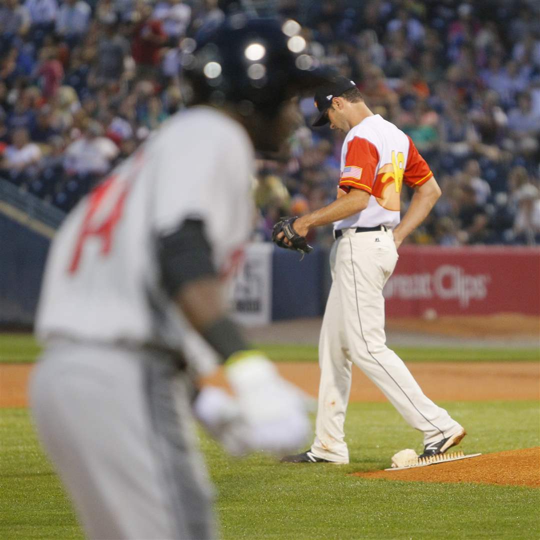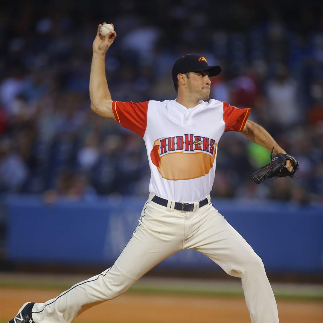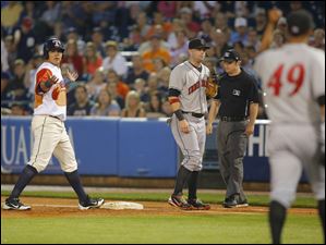 Toledo pitcher Derek Hankins gives up a home run to Indianapolis' Felix Pie during the first inning.