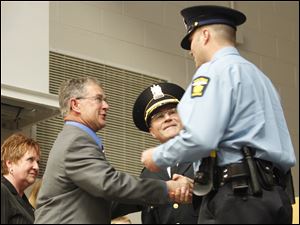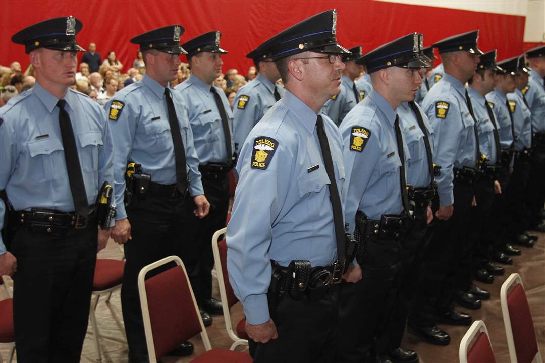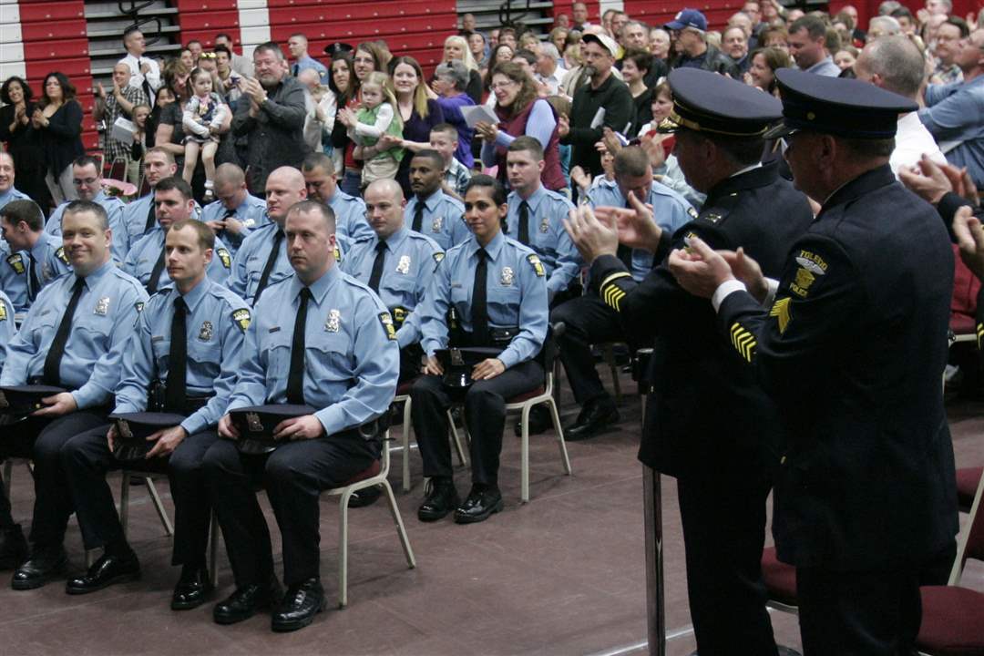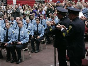 The 58th Basic Police Academy Class receives applause during graduation at Owens Community College in Perrysburg, Ohio.