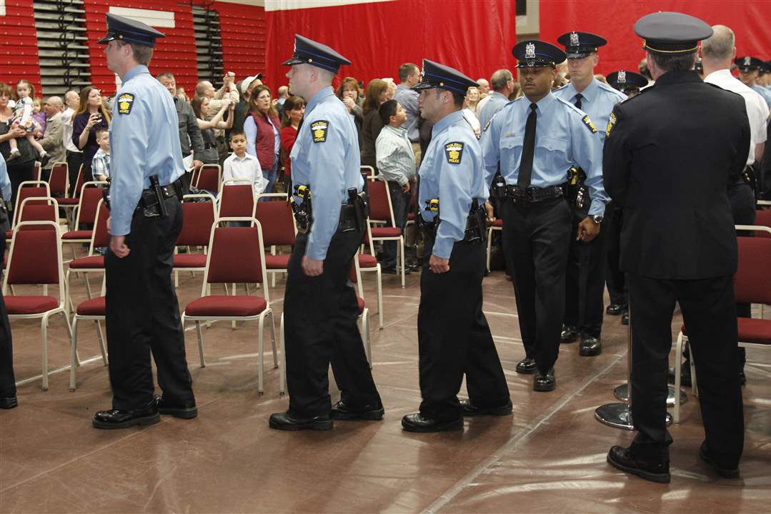 The processional of the 58th Basic Police Academy class graduation at Owens Community College in Perrysburg, Ohio.