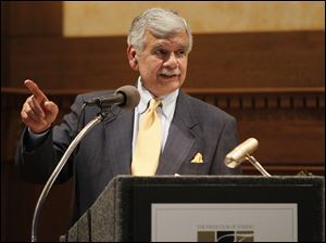 Ron Royhab, former vice president and executive editor of The Blade, wins the Golden Touchstone award during the Press Club of Toledo's Touchstone Awards on Thursday.