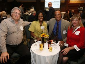 Mark Griffin, left, Tedra White of ProMedica, Fletcher Word, and Touchstone winner Melissa Burden.