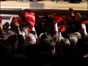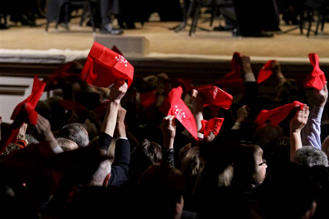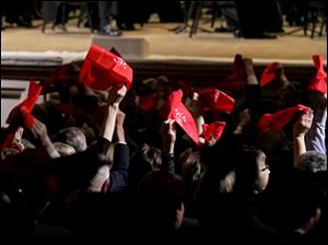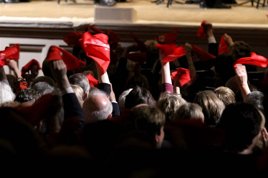 Audience members, mostly from Toledo, wave Spring for Music scarves.