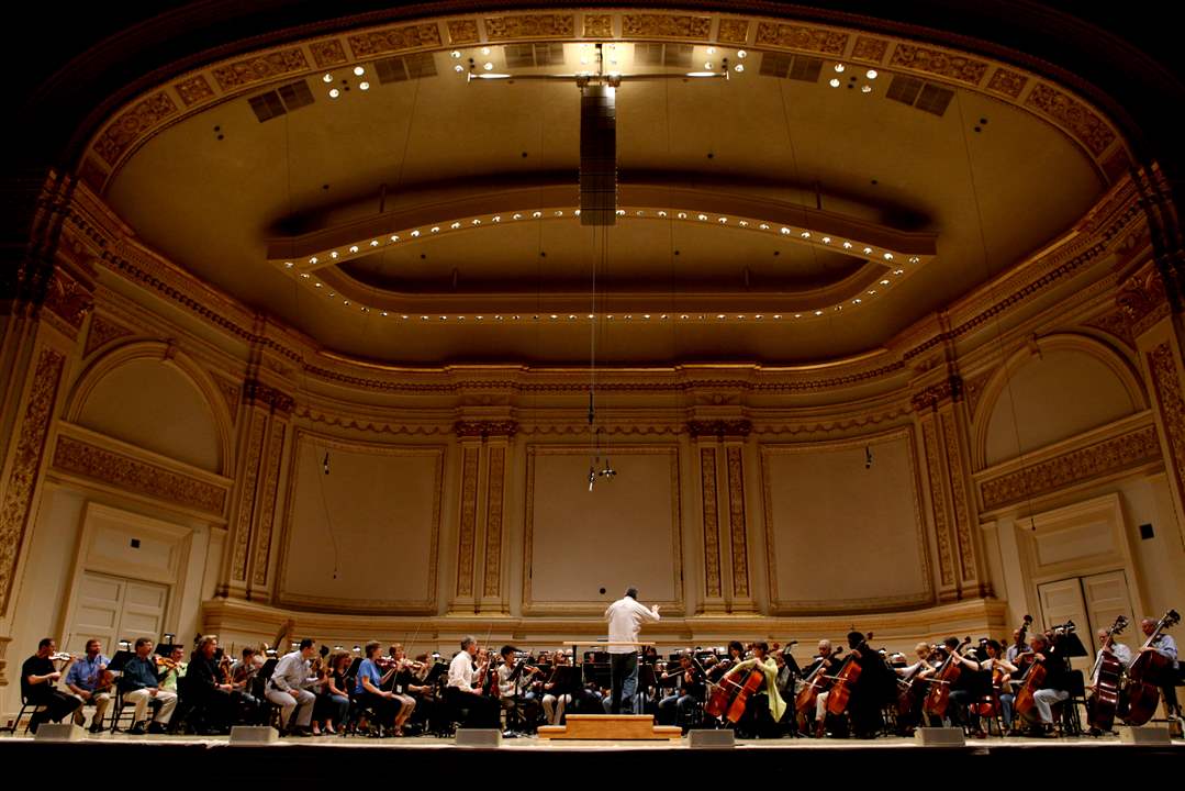 Under the direction of Principal Conductor Stefan Sanderling, members of the Toledo Symphony rehearse at Carnegie Hall.