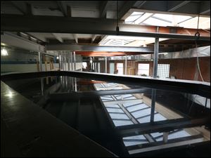 A shallow tank is under construction inside the aquarium of the Toledo Zoo.