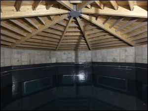 A 25,000 gallon tank is filled with water as it is tested for leaks inside the aquarium of the Toledo Zoo.