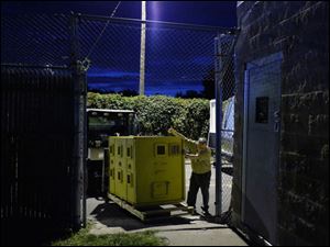 Andy Odum, Toledo Zoo assistant director of animal programs and curator of herpetology, helps deliver Emerson, a Galpagos tortoise.
