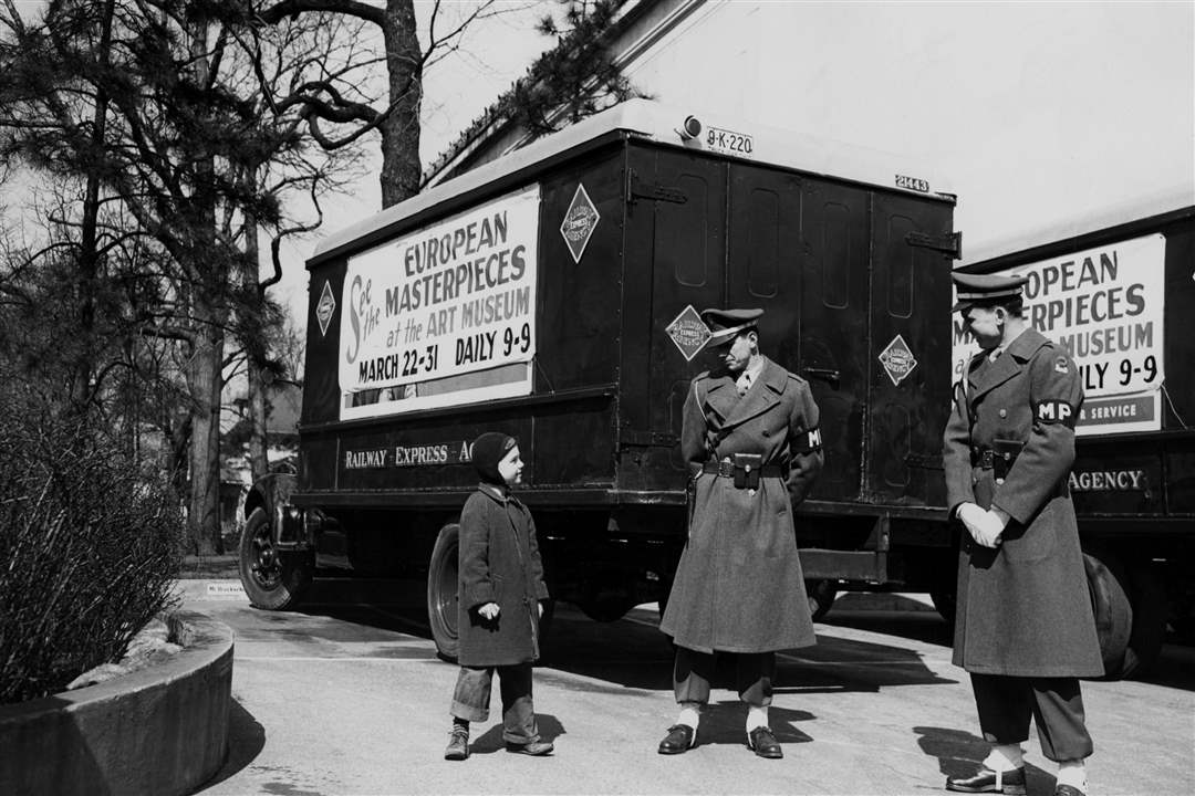 Photo shows the convoy that delivered the paintings, which had been stored in a German salt mine during World War II. They were taken to the U.S. for safekeeping, where they went on a tour through museums in cities including Toledo, and later returned to Germany.