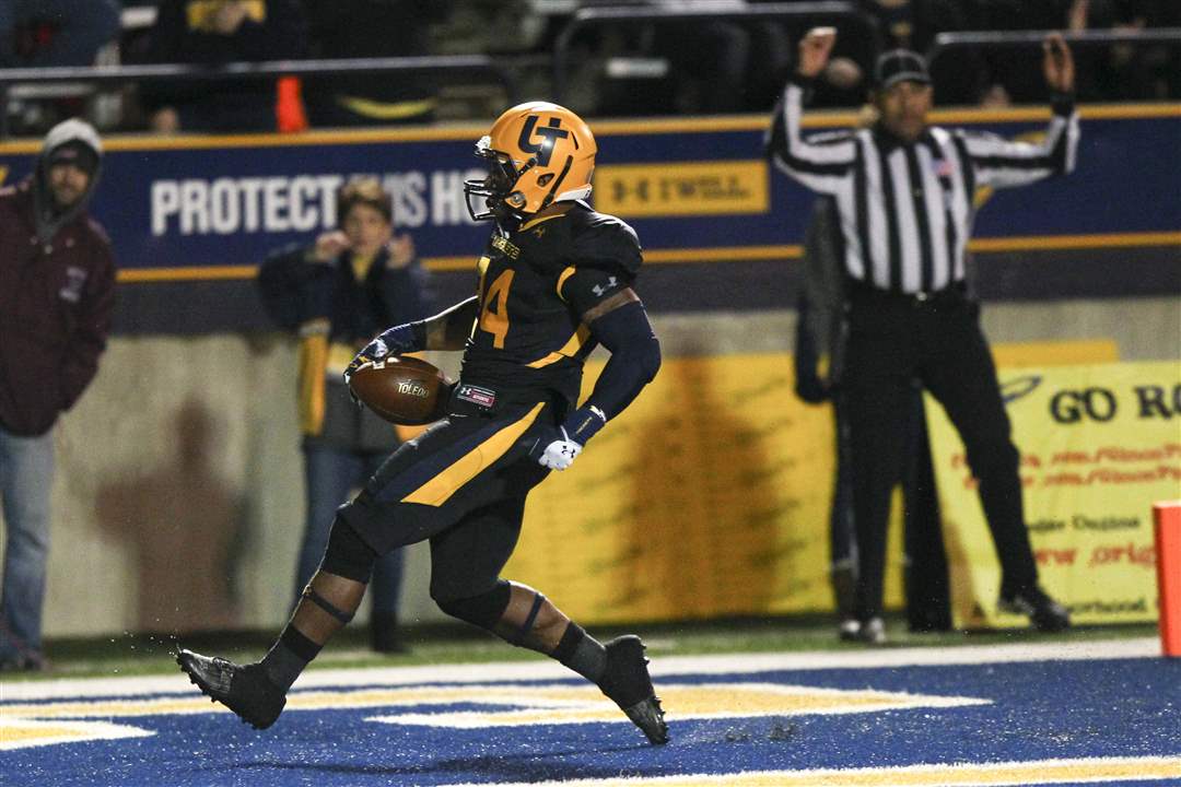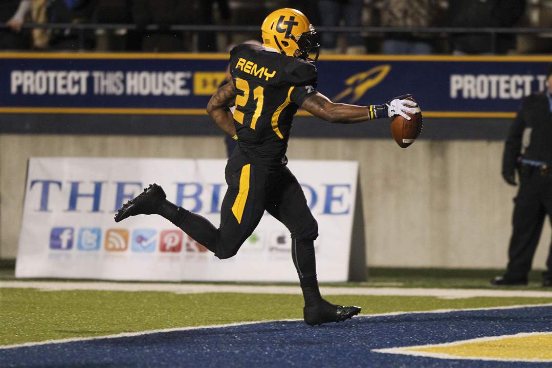 Toledo freshman Marc Remy runs the ball into the end zone to score.