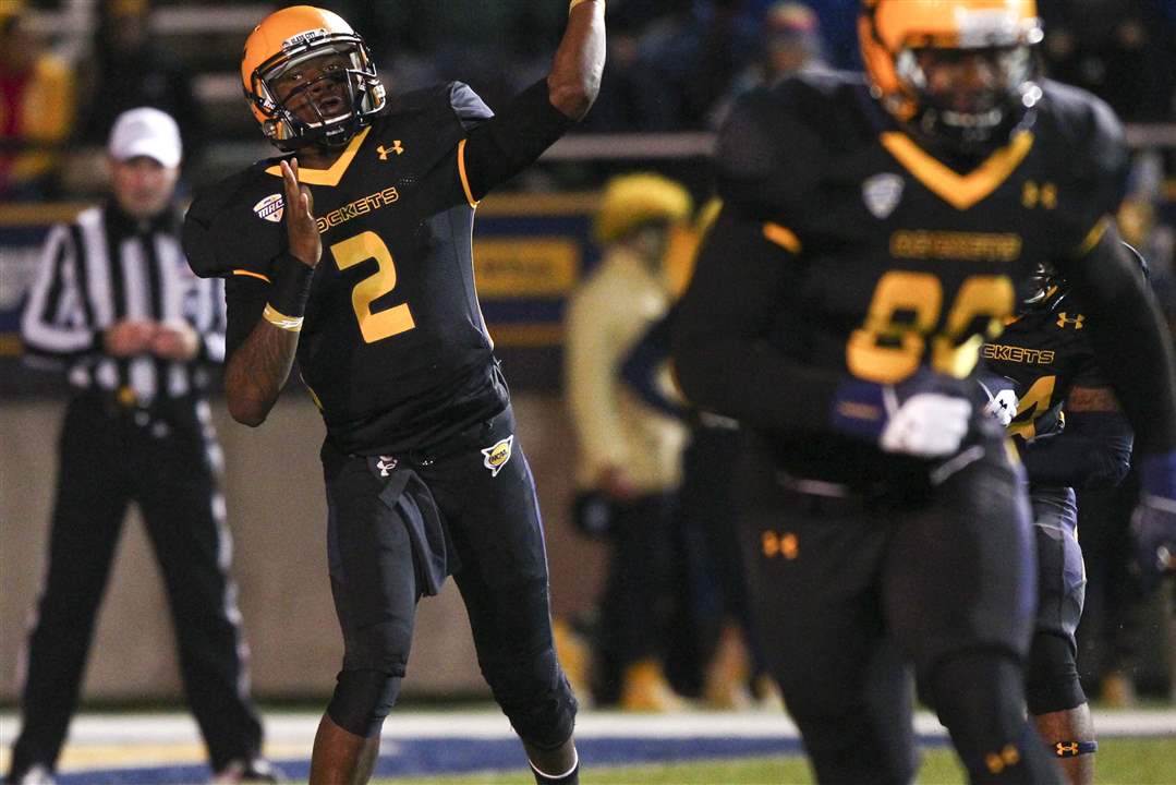 Toledo senior quarterback Terrance Owens throws a pass.