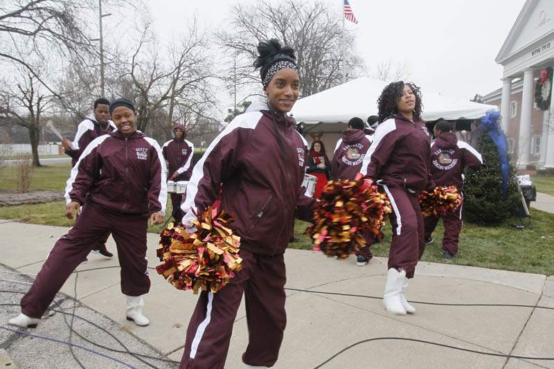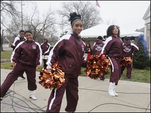 Myan Mumford, 17, a senior at Scott High School, and other members of the Fantastic Dance Machines, accompanied by the percussion section of the Scott Bulldogs Band entertain the donors and volunteers.